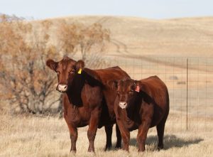 The commercial cow herd numbers around 150 head of mother cows and is made up of predominately Red Angus and Red Angus cross females. The bulls used in our commercial herd are all home-raised sires or sires purchased from our own customers. The commercial cows are calved March-May. The commercial calves are usually marketed in the fall but have been fed out on the ranch, depending upon the market situation in the current year.